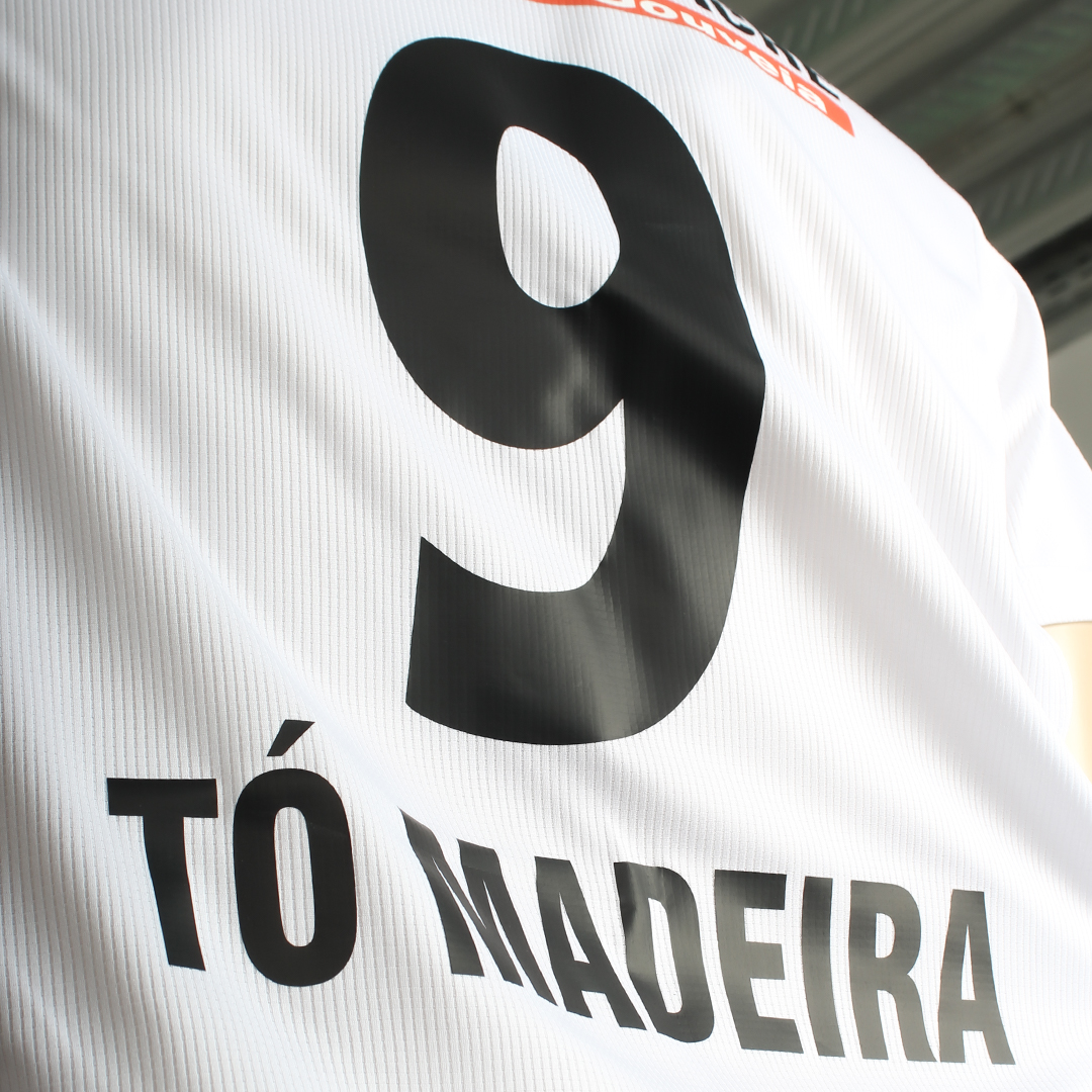 Nas costas, apresenta o número 9 e o nome Tó Madeira.
